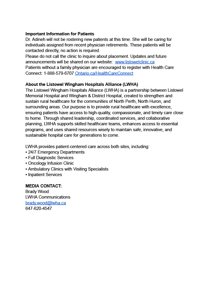 Due to the replacement of the Main Entrance Doors, on Thursday October 24th, anyone using the Main Entrance will be directed to the Emerg Doors to the left of the Main Entrance doors.